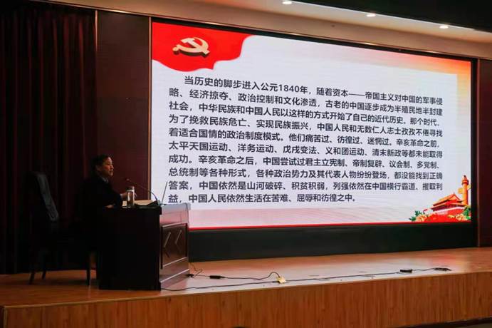 冀来喜带领与会人员共同回顾了中国共产党的百年发展历程,强调党史学习教育的重要意义。并以马克思主义为什么“行”,中国共产党为什么“能”,社会主义为什么“好”为切入点,联系中国共产党百年奋斗史讲述了中国共产党的成功之道和中国共产党的初心与新时代使命。