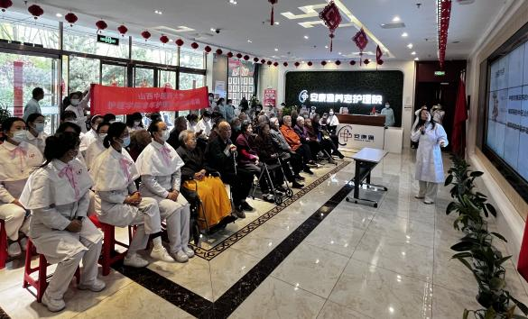 德赢AC米兰中国官方网站教师聂优爱为老年人作了“糖尿病的中医治疗及护理”健康知识宣传讲座,由学院部分教师、研究生和本科生组成的志愿者服务队积极为老年人进行健康宣教,并就老年人的健康问题开展了中医特色护理服务。本次社会实践活动增强了学生爱老助老的护理职业情怀,对弘扬孝亲敬老文化发挥了重要作用。