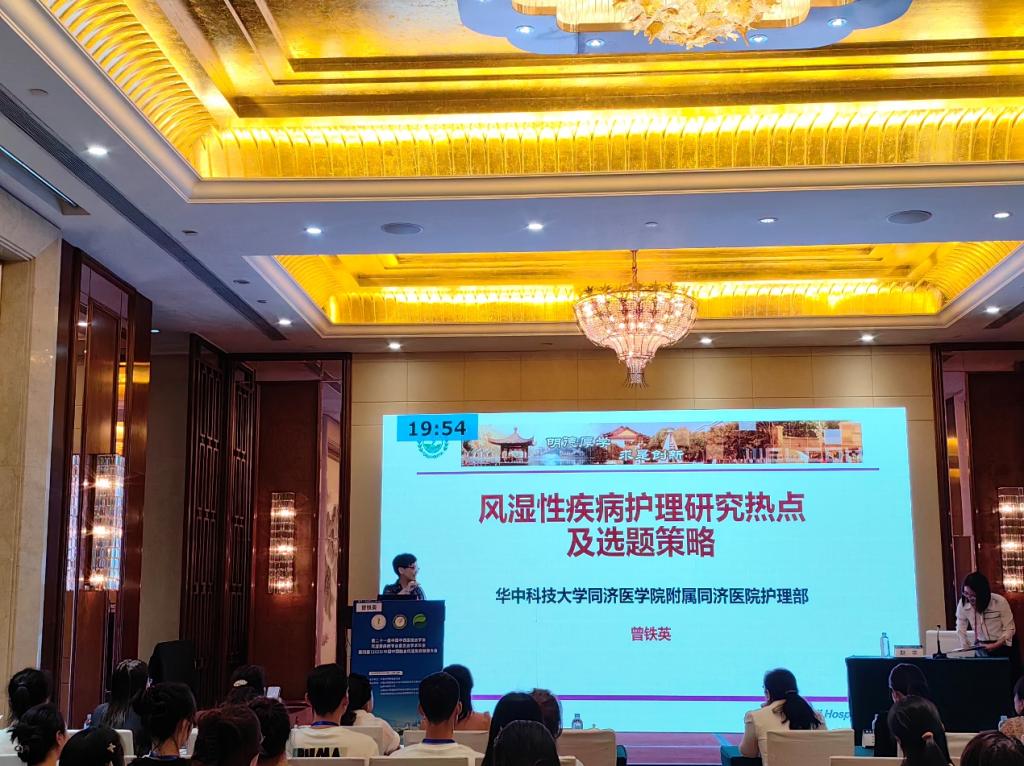 会议特邀华中科技大学同济医学院附属同济医院护理部曾铁英教授进行“风湿性疾病护理研究热点及选题策略”为题的讲座。同时,北京协和医院风湿免疫科张春燕护士长、浙江中医药大学附属第二医院风湿免疫科卢桂芳护士长、中国医科大学附属第一医院风湿免疫科王芳护士长、《护理研究》杂志常务副主编兼编辑部主任朱瑞芳教授、山西医科大学第二医院风湿免疫科连芬萍护士长、山西白求恩医院风湿免疫科时红护士长,分别从风湿免疫性疾病的临床护理新进展、慢病管理新模式和新技术、中西医结合应用护理及相关领域的科学研究等不同角度展开了精彩的论述。