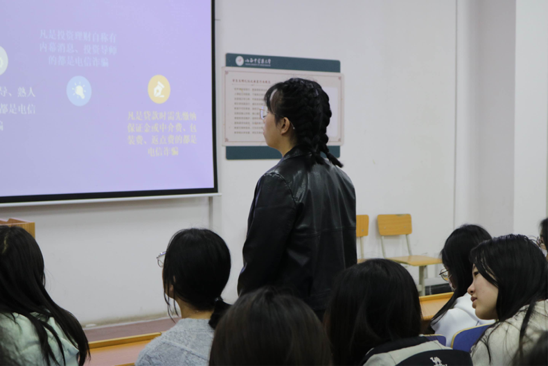 本次讲座中,乔柏霖老师深入浅出地科普了电信诈骗活动的定义与各种手段,使新生们对电信诈骗有了较为全面的认知。活动中,大家积极踊跃地参与互动,在趣味性的一问一答中掌握了预防诈骗的知识与妙招。
